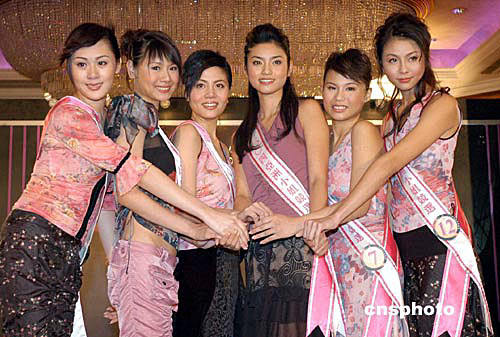 圖為六位入圍候選佳麗馮梓瑩、鄭穎、盧婉婷、王慧、陳樂(lè)敏、黃淑玲(左起)慶祝攜手入圍。