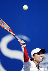 九月十八日,在北京網(wǎng)球中心中央球場進(jìn)行的ITF女子單打決賽中,中國選手鄭潔以二比零戰(zhàn)勝隊(duì)友李娜奪得冠軍。圖為鄭潔在比賽中。中新社記者:盛佳鵬