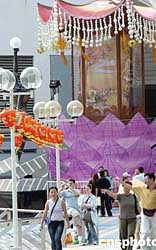香港新景點(diǎn)星光大道近日裝飾一新,大型彩燈及花燈高掛準(zhǔn)備迎接中秋佳節(jié)。圖為游客在充滿節(jié)日氣氛的環(huán)境下觀光游覽。作者:洪少葵