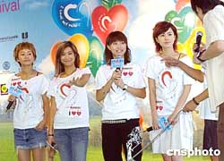 香港音樂組合COOKIES四名成員, 9月26日在香港跑馬地馬場出席 “世界心臟日2004”,并登臺表演助興。作者:洪少葵