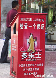 果皮箱套上“安全”衣悄然出現(xiàn)在福建福州街頭,并逐漸為榕城市民所接受。兩年前,福州街頭兩次出現(xiàn)安全套廣告,均不到半天就被“封殺”。作者:王東明