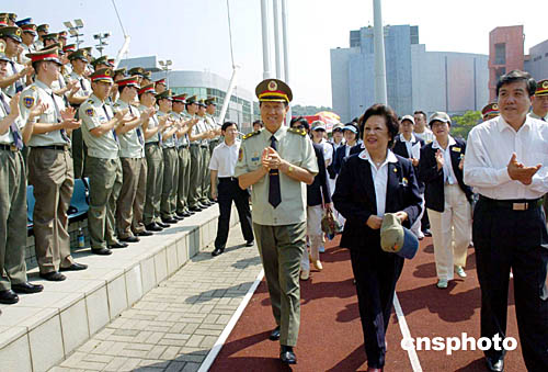香港特首夫人董趙洪娉率各界人士于9月28日中秋節(jié)探訪中國(guó)人民解放軍駐港部隊(duì),與外交部駐港特派員楊文昌、駐軍政委劉良凱等陪同下步入會(huì)場(chǎng),受到熱烈歡迎。