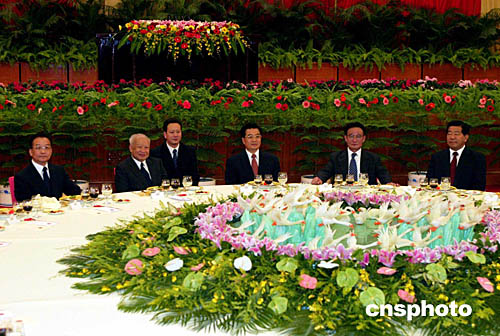 胡錦濤、吳邦國(guó)、溫家寶、賈慶林、曾慶紅、黃菊、吳官正、李長(zhǎng)春、羅干等中國(guó)領(lǐng)導(dǎo)人蒞臨會(huì)場(chǎng),與各界嘉賓共賀國(guó)慶。