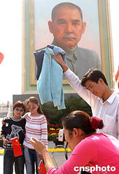 圖:天安門廣場孫中山像前排隊(duì)拍照