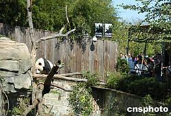 10月3日秋高氣爽,生活在華盛頓國家動物園的中國大熊貓“添添”和“美香”興致勃勃,玩耍嬉戲,吸引眾多游客。作者:余東暉