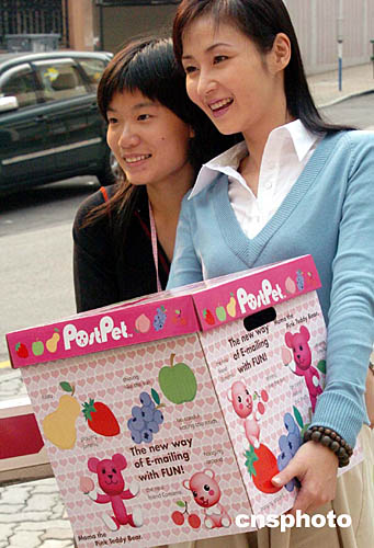 圖為一名女影迷向萬(wàn)綺雯送禮品。