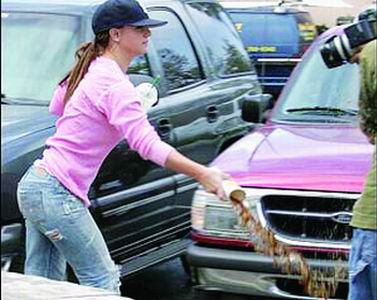 雖然遭到布蘭妮的痛罵和凱文·費(fèi)德林的奚落,但這名很有“職業(yè)精神”的狗仔隊(duì)攝影師并不氣餒,依然緊追布蘭妮夫婦不放。最后布蘭妮實(shí)在氣不過(guò),就跑進(jìn)附近一家酒吧里要了兩杯可樂(lè),沖著那名狗仔隊(duì)攝影師就撲了上去,潑得他滿頭滿臉都是可樂(lè),甚至連手中的相機(jī)都給淋了個(gè)透。