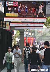 十月十日,上海街頭到處懸掛著NBA中國(guó)賽的宣傳廣告,為即將在申城上演的NBA中國(guó)賽宣傳造勢(shì)。作者:湯彥俊