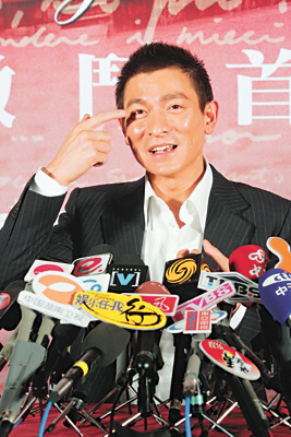 劉德華出席儀式后,即時滿頭大汗。問到他是否因為Sammi太低胸?他笑指對方件衫真是好V,自己都不禁望多兩眼;但他反而更留意Sammi將頭發(fā)染成黑色,十分好看。