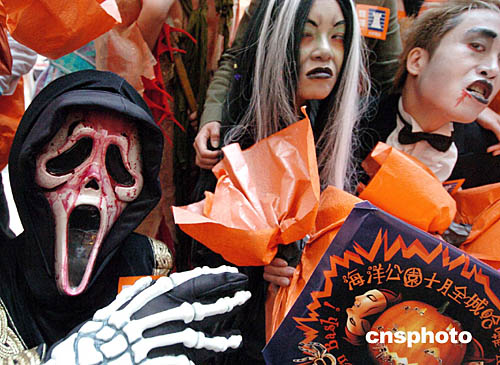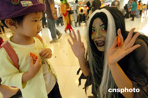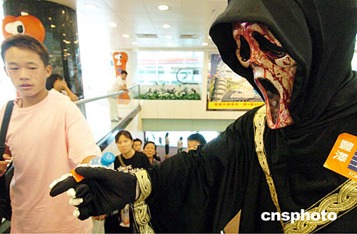 萬(wàn)圣節(jié)即將來(lái)臨,香港商城開(kāi)始拉開(kāi)萬(wàn)圣節(jié)序幕,十月十五日在沙田新城廣場(chǎng),商家推出別開(kāi)生面的萬(wàn)圣節(jié)商品促銷活動(dòng)。作者:錢興強(qiáng)