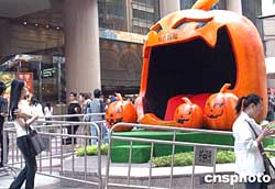 一年一度的萬圣節(jié)將臨,香港時(shí)代廣場裝飾一新,各種新裝飾的造型藝術(shù)作品充滿萬圣節(jié)氣氛。作者:錢興強(qiáng)