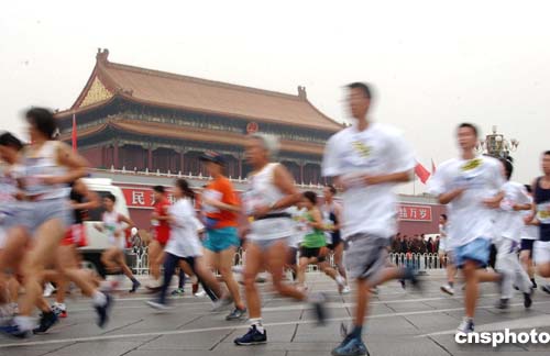 二零零四北京國(guó)際馬拉松在天安門廣場(chǎng)發(fā)槍,近兩萬(wàn)五千人參加了比賽,是北京國(guó)際馬拉松創(chuàng)辦二十三年來(lái)選手最多的一屆。作者:武仲林