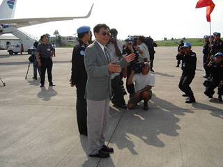 張伯清同隊(duì)員親切握手,并進(jìn)行了講話,向隊(duì)員致以熱烈的歡迎,并希望他們安全、順利、出色地完成聯(lián)合國(guó)交給的任務(wù),體現(xiàn)中國(guó)警察的風(fēng)范,為國(guó)爭(zhēng)光。