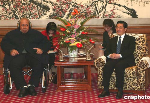 胡錦濤表示,中湯兩國(guó)同處亞太地區(qū),都是發(fā)展中國(guó)家,都熱愛(ài)和平,渴望發(fā)展。兩國(guó)優(yōu)勢(shì)互補(bǔ),加強(qiáng)合作,有利于兩國(guó)的共同發(fā)展與繁榮。中國(guó)政府愿與湯加政府共同努力,在和平共處五項(xiàng)原則基礎(chǔ)上,進(jìn)一步擴(kuò)大兩國(guó)各領(lǐng)域友好合作,使中湯友好合作關(guān)系長(zhǎng)期健康穩(wěn)定地向前發(fā)展。