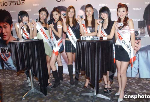 七位賓得數(shù)碼女郎向媒體展示七款嶄新型號(hào)的數(shù)碼相機(jī)。作者:鄧慶樂(lè)
