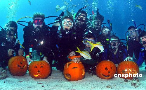 10月25日,在美國佛羅里達(dá)州25英尺海底上演了一場別開生面的南瓜雕刻大賽,以此迎接即將到來的萬圣節(jié)。Ic/cnsphoto