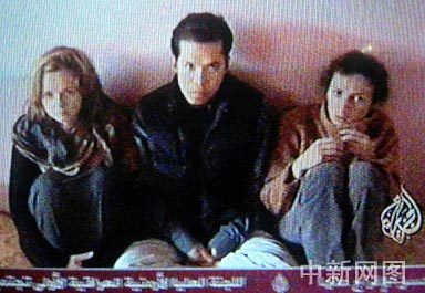 從半島電視臺節(jié)目中抓拍的畫面中可以看到3名被“穆斯林軍”綁架的聯(lián)合國人質(zhì)。10月31日,綁匪在錄像中提出3天之內(nèi),外國軍隊和聯(lián)合國機構(gòu)必須撤離阿富汗,否則就殺掉人質(zhì)。