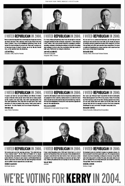 與邁克爾·摩爾的激烈攻擊態(tài)度不同,美國(guó)紀(jì)錄片領(lǐng)域的執(zhí)牛耳人物艾羅·莫里斯(Errol Morris)采用了更為客觀、理性的大選廣告戰(zhàn)略。這位奧斯卡最佳紀(jì)錄片得主參加了美國(guó)政治運(yùn)動(dòng)委員會(huì)發(fā)起的“前進(jìn)運(yùn)動(dòng)”(Move On),采訪了50多位在2000年投過布什一票、如今轉(zhuǎn)向克里陣營(yíng)的普通公民,讓他們直面鏡頭,訴說為什么產(chǎn)生了這樣的立場(chǎng)轉(zhuǎn)變。