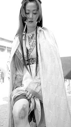 記者來(lái)到劇組探班時(shí),正趕上拍攝一場(chǎng)穆桂英在馬上戰(zhàn)群雄的戲,只見(jiàn)王思懿手持長(zhǎng)槍躍躍欲試,剛要放馬撒開(kāi)韁繩舉槍,馬突然驚了,一個(gè)加速,把王思懿從馬背上甩下來(lái)。劇組工作人員見(jiàn)此狀全都嚇呆了,因?yàn)橥跛架彩窍ドw先著地跌下來(lái),已經(jīng)疼得暈過(guò)去。待將王思懿攙扶起來(lái)時(shí),她的腿部已根本不聽(tīng)使喚,沒(méi)法走路,在導(dǎo)演、醫(yī)生等簡(jiǎn)單處理后,記者才得知,原來(lái)思懿左腿膝部完全脫臼,轉(zhuǎn)了180度之后才扳回來(lái)。