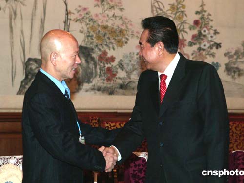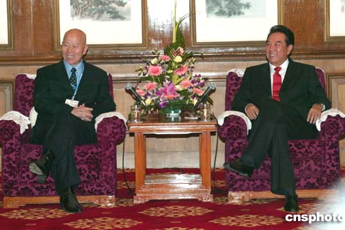 國務(wù)院臺灣事務(wù)辦公室主任陳云林十一月八日在北京會見臺灣前民進黨主席許信良。作者:滿會喬
