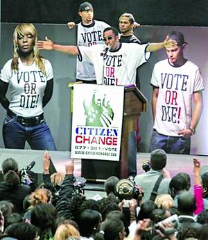 吹牛老爹曾提出了“不投票毋寧死”的口號,意在號召年輕選民參加美國大選投票,珍惜投票權(quán),并建立了一個名為公民選擇的組織。吹牛老爹表示,這個組織還將繼續(xù)存在下去,參與到各種政治活動中。他說:“這只是第一步,能讓更多的人參與到我們的組織中。我準(zhǔn)備建立一個基礎(chǔ)組織,授權(quán)給他們。”吹牛老爹說:“我已經(jīng)意識到我本可以做得更好。除了攻擊布什,我其實可以用啟發(fā)的方式,引導(dǎo)美國的年輕人去思考,讓他們自己去作出決定。此前,年輕選民都不太關(guān)心總統(tǒng)選舉之事,但現(xiàn)在我們把這種情況稍微扭轉(zhuǎn)過來,我們的努力獲得了回報!