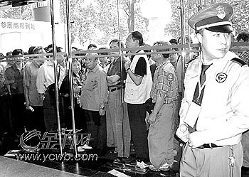 被拒進(jìn)場后,大部分觀眾雖然十分失望,但仍在廣場附近徘徊,久久不愿離去。一些年輕氣盛的觀眾則對(duì)此表示強(qiáng)烈憤慨。一名中年男子高聲質(zhì)問保安員:“我們都是看了報(bào)紙?zhí)匾廒s過來的,你們?cè)谛麄鲿r(shí)只說是到8日結(jié)束,沒說明到中午就閉館,這不是折騰人嘛,白白浪費(fèi)了我們的時(shí)間和心機(jī),你們要給精神賠償!”