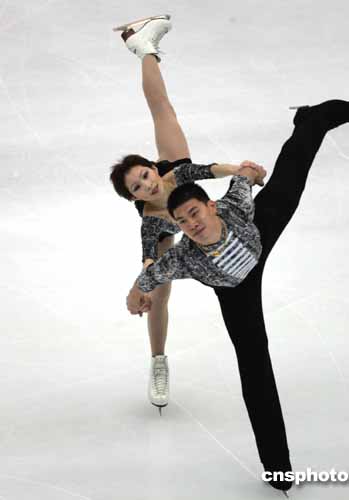 中國(guó)隊(duì)派出雙人滑第一組合、兩度世錦賽冠軍申雪/趙宏博出戰(zhàn),他們攜新編動(dòng)作在加拿大站大獎(jiǎng)賽上首演成功奪取冠軍。由于頭號(hào)種子俄羅斯選手托特米安妮娜/馬列寧的缺席,中國(guó)組合是參加本站比賽世界排名最高的運(yùn)動(dòng)員。今天的短節(jié)目比賽,申雪/趙宏博在九對(duì)選手中第六個(gè)出場(chǎng),盡管在做拋跳三周時(shí),申雪落地單手扶冰出現(xiàn)小失誤,但這并沒有影響他們之后的發(fā)揮,在《月光》悠揚(yáng)的樂(lè)曲聲中順利完成了八個(gè)規(guī)定動(dòng)作,以六十六點(diǎn)三八分位列第一。