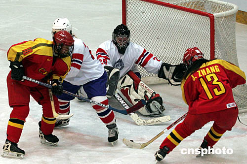 組圖:中國(guó)女子冰球隊(duì)十比零大勝挪威