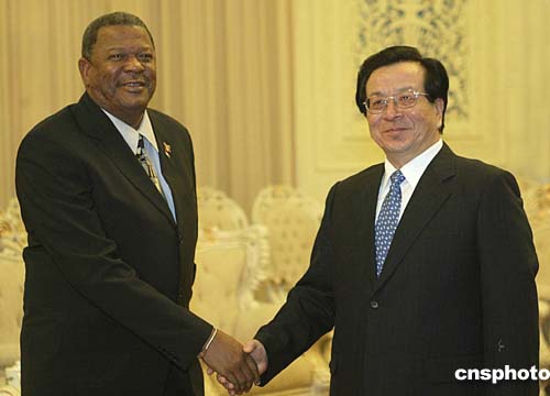 曾慶紅今天下午會(huì)見(jiàn)了到訪的安提瓜和巴布達(dá)總理斯潘塞。他說(shuō),根據(jù)中方倡議,“中國(guó)-加勒比經(jīng)貿(mào)合作論壇”首屆部長(zhǎng)級(jí)會(huì)議將于明年二月在牙買加舉行,中國(guó)愿與各方共同努力,使會(huì)議取得成功,以推動(dòng)中國(guó)同包括安巴在內(nèi)的加勒比國(guó)家的經(jīng)貿(mào)關(guān)系的發(fā)展。