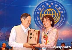 開(kāi)幕式上還舉行頒獎(jiǎng)儀式,認(rèn)知科學(xué)和實(shí)驗(yàn)心理學(xué)家、中國(guó)科學(xué)院生物物理研究所陳霖教授獲二00四年香港求是基金會(huì)“杰出科學(xué)家獎(jiǎng)”,獎(jiǎng)金一百萬(wàn)元人民幣,該基金會(huì)出資人、已九十一歲高齡的香港愛(ài)國(guó)實(shí)業(yè)家查濟(jì)民親自向陳霖頒獎(jiǎng)。安徽中科大訊飛信息有限公司總裁劉慶峰等五人榮獲本年度“中國(guó)科協(xié)求是杰出青年成果轉(zhuǎn)化獎(jiǎng)”,另有十五位青年才俊獲“中國(guó)科協(xié)求是杰出青年實(shí)用工程獎(jiǎng)”。
