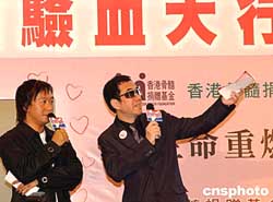 香港明星黃秋生(右)20日出席“骨髓捐贈驗血大行動”,以名人效應(yīng)影響更多人。作者:譚達明