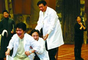 中新網(wǎng)11月23日電 據(jù)京華時報報道,昨(22)天下午,根據(jù)老舍同名短篇小說改編的話劇《開市大吉》正式投入排練。人藝劇場排練廳內(nèi),幾塊木板搭建起一個醫(yī)院門面,李光復(fù)、張永強、孫星身著白大褂,正為“誰當院長”吵得臉紅脖子粗。坐在場地前方的導(dǎo)演顧威則不時站起身,走到演員中間指導(dǎo)建議。顧威表示將力爭再現(xiàn)“原汁原味”的老舍式幽默。