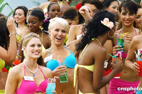 在12月4日舉行第54屆世界小姐總決賽前夕,為拍攝宣傳短片,各國美女身著泳裝在三亞開沙灘派對(duì),盡情感受三亞熱情風(fēng)情。作者:喜來登