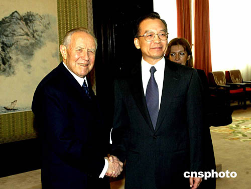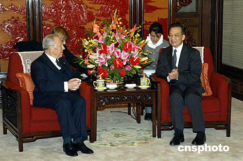 中新網(wǎng)12月6日電 國務(wù)院總理溫家寶今天上午在中南海紫光閣會(huì)見了來訪的意大利總統(tǒng)錢皮,就發(fā)展中意關(guān)系提出三點(diǎn)意見。