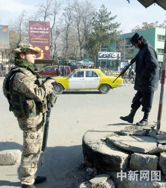 圖為一名德國維和士兵和一名阿富汗警察在喀布爾街頭站崗。