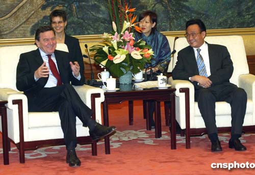 施羅德贊同吳邦國對(duì)德中關(guān)系的評(píng)價(jià)。他說,中德關(guān)系建立在相互信任的基礎(chǔ)上,各個(gè)方面的合作都很好。德國政府重視德中關(guān)系,將繼續(xù)堅(jiān)持一個(gè)中國政策。德方愿進(jìn)一步加強(qiáng)兩國議會(huì)業(yè)已存在的良好合作關(guān)系。同時(shí),愿繼續(xù)加強(qiáng)與中國的民間交往,以及文化交流。德方愿與中方一道使德中關(guān)系始終保持高水平的發(fā)展。