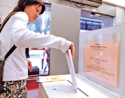 中新網(wǎng)12月9日電 據(jù)香港媒體報(bào)道,“領(lǐng)匯”房地產(chǎn)投資信托基金今日中午十二時(shí)截止認(rèn)購,有收票銀行提早在八時(shí)開門收表。散戶今日十二時(shí)之前,仍有機(jī)會(huì)作最后沖刺,到銀行遞交認(rèn)購表格。