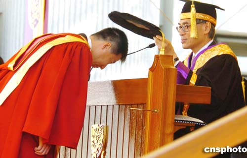 獲頒授榮譽博士銜后,帶著博士帽的楊利偉向傳媒表示,今日參與中大的學(xué)位頒授典禮,感到非常高興,再次來港,感受到香港市民對航天事業(yè)的熱情。他說,上次來港已是一年前,在這一年多里,他一直感受到香港市民對航天員的熱情和關(guān)愛,成為他的激勵,而這種激勵一直伴隨著他的工作。