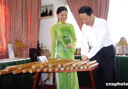 圖:越南女藝人教游客演奏樂(lè)曲