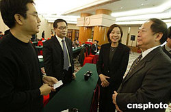 連續(xù)兩日舉辦的商務部首期服務外包培訓班學術(shù)交流氣氛濃厚,許多成員借此機會向?qū)<覍W者請教咨詢。十二月十日,富士施樂(中國)有限公司副總裁李濟華(右)、北京博思商通資訊有限公司董事長曾松(左二)與商務部有關(guān)人員一起交流。中新社記者:任海霞