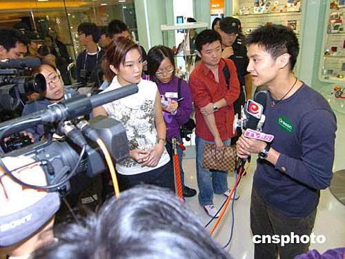 中國跳水金牌選手田亮11日來到香港時代廣場8層電子產(chǎn)品專賣店﹐為該店圣誕節(jié)禮品促銷造勢。中新社記者:趙振清