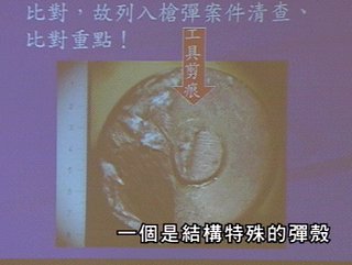 臺灣“中國時報”今日頭版的位置報道說,項目人員是在11月底,根據刑事局提供的分析資料、借訊在押的擁槍嫌犯,并循線查出臺南的一個槍械制造集團所制造販售的子彈,和項目人員在“319槍擊案”現(xiàn)場尋獲的2顆彈殼完全相同,因而前往緝捕,一舉捕獲5名嫌犯,主嫌坦承,“319槍擊案”現(xiàn)場發(fā)現(xiàn)的彈殼是他們所制造販售的,隨后并帶警方起出制造工具。