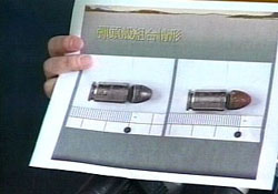 08.28 李昌鈺鑒識(shí)報(bào)告出爐,調(diào)查報(bào)告發(fā)現(xiàn)銅彈頭底部有磨痕,可能是由工廠機(jī)具所打造,鉛彈頭上則有藍(lán)、白色纖維及血跡反應(yīng),兩槍很有可能從兩把槍支分別射擊,但可能是同一支槍管鋸開(kāi),改造成兩把槍支。