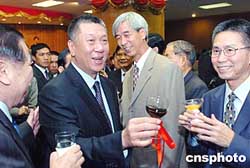 何厚鏵向與會(huì)人士一一敬酒,祝賀澳門(mén)回歸祖國(guó)五周年。 作者:宋吉河