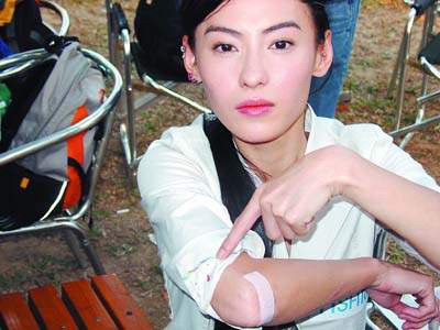 張柏芝在拍廣告時(shí)不改其貪玩的個(gè)性,與古天樂(lè)打鬧,還不慎擦傷玉臂。張柏芝很傷心地向記者展示她手臂上的傷痕說(shuō):“今天拍這個(gè)廣告主要是說(shuō)我和古仔(古天樂(lè))都是射擊好手,所以剛才在拍攝的空隙我就和他拿著手槍追逐互射,他斗不過(guò)我,就拿桌上的產(chǎn)品來(lái)擲我,我在左閃右避的時(shí)候手臂就碰到背景板,這些背景板都是用木制的,很粗糙,所以就刮傷了手,皮都掉了,當(dāng)場(chǎng)流血。”