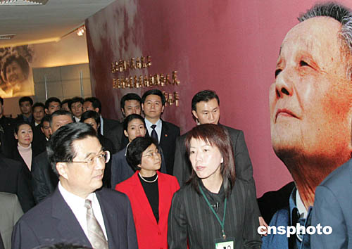 胡錦濤與她們握手、攀談。胡主席說:“看見你們,我很高興!崩钆空f:“我們也很高興呀!”
