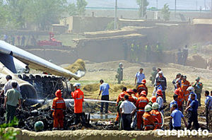新疆機場集團有限責任公司消防保衛(wèi)中心的消防人員現場說,消防部門動用十余輛消防車,經過努力,飛機的大火已被撲滅。已知六名機組人員死亡,目前在尋找另一位機組人員,估計其已經無生還可能。