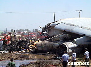 5月18日10時50分,阿塞拜疆一架伊爾76貨機在新疆烏魯木齊機場附近墜毀。這架貨機執(zhí)行太原經(jīng)停烏魯木齊至阿塞拜疆巴庫任務,在烏魯木齊機場起飛兩分鐘后,墜落在跑道西頭約10公里處。機上共有7人遇難。圖為貨機失事現(xiàn)場。作者:汪金生