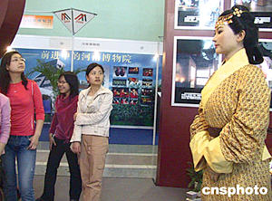 五月中旬正在北京農(nóng)展館舉辦的“博物館及相關產(chǎn)品與技術博覽會”上,湖南省博物館展出的馬王堆漢墓主人——辛追夫人的復原像吸引了眾人目光。作者:韓藝冰