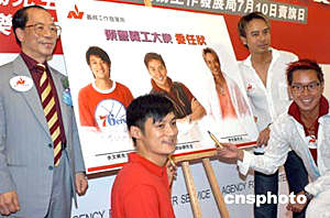 歌星譚詠麟、李克勤、余文樂(lè)6月9日在香港出席義務(wù)工作發(fā)展局舉行《全民義工參與賣(mài)旗日‧榮譽(yù)義工大使委任儀式》,三位榮譽(yù)義工大使于委任狀上簽名,協(xié)助推廣活動(dòng)。作者:鄧慶樂(lè)